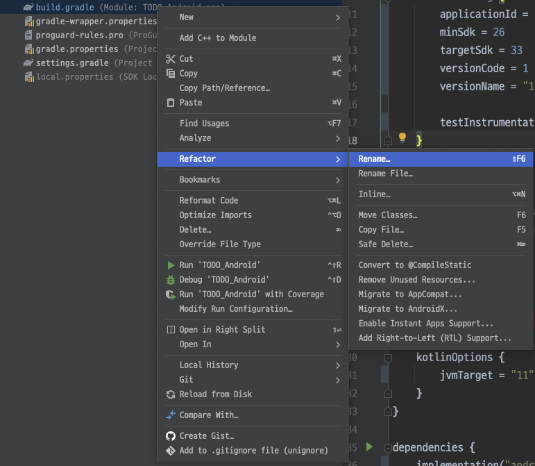 }위의 내용들을 수정했다면 build.gradle (module level) 의 파일명끝에 .kts 라는 확장자를 추가해줍니다.