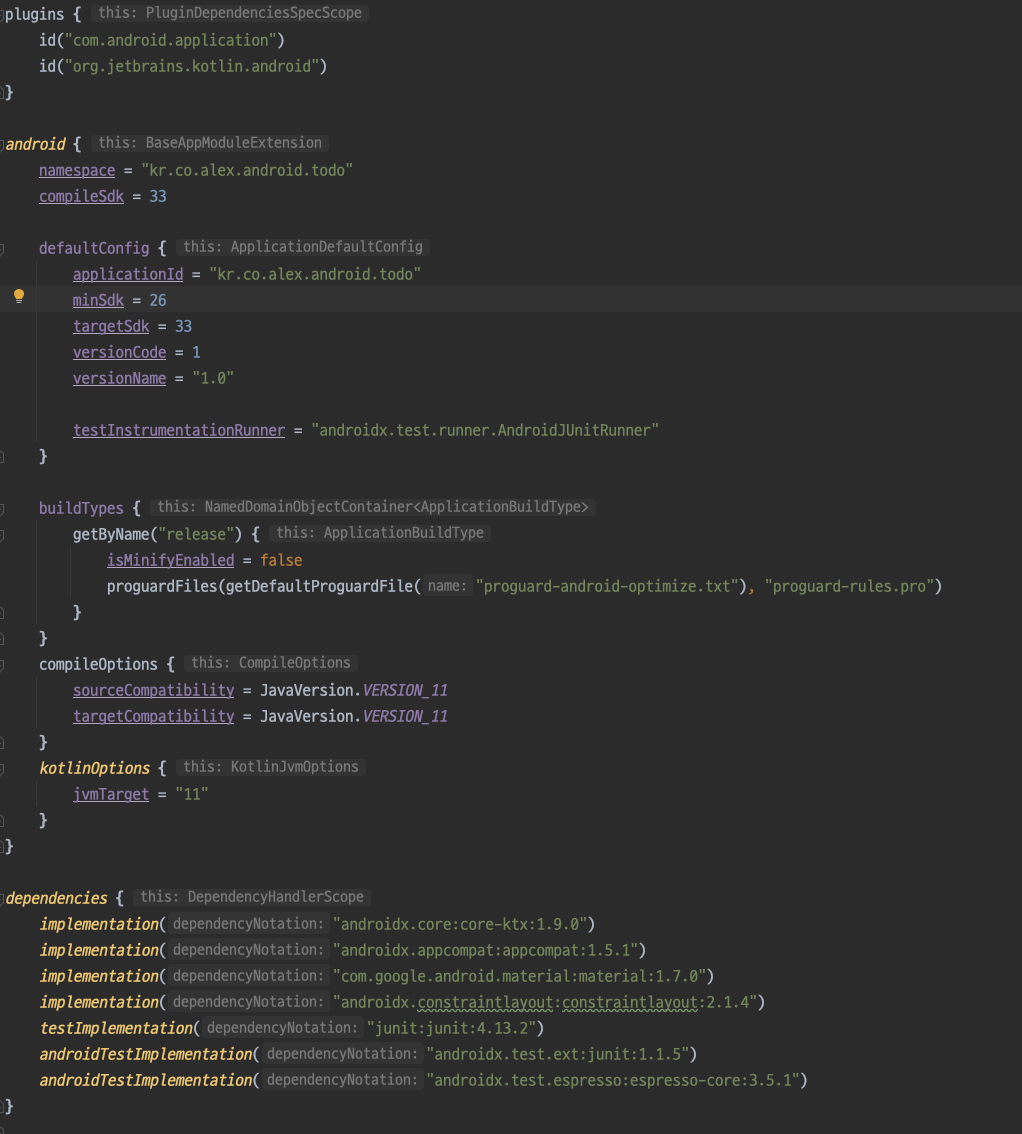 안드로이드 프로젝트를 신규로 생성하면 build.gradle 파일이 포함되어 있습니다. 해당 파일은 Groovy DSL Gradle build script 인데요. 기존에 안드로이드 개발을 하셨던 분들이라면 굳이 Kotlin DSL 로 변경할 필요가 있을까? 라고 생각하실 수도 있겠지만 Kotlin DSL 이 가진 장점은 아래와 같습니다.